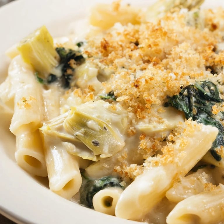 Pin It One winter night, I made this for myself after a long week and ate it straight from the baking dish while watching snow fall outside my window. The warmth of the creamy pasta, the slight tang of the artichokes, and the crunch of the breadcrumbs felt like a hug from the inside out. It reminded me that comfort doesn't always need an occasion.