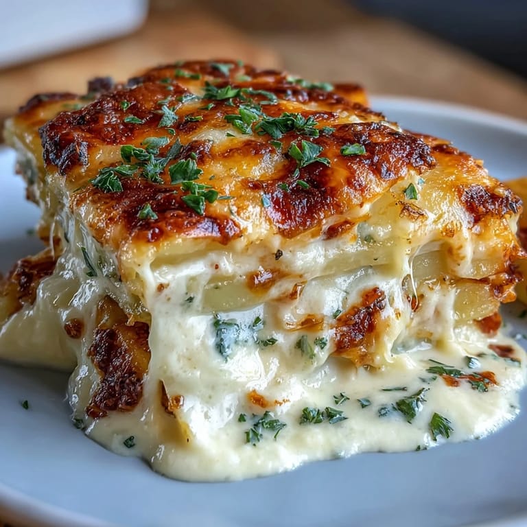 Pin It By carefully layering thinly sliced potatoes with a fragrant garlic cream sauce and generous amounts of Gruyère and Parmesan, this dish takes traditional comfort food to another level. The slow baking melds flavors, creating a luscious texture that melts in your mouth. A sprinkle of fresh herbs at the end adds a bright, fresh note.