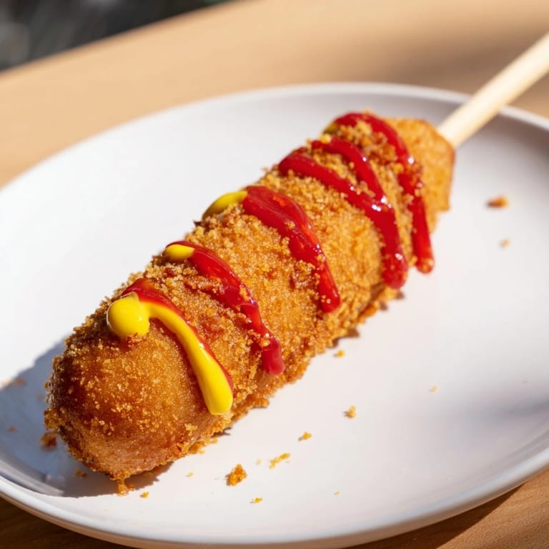 Pin It The first time I had these at a night market in Seoul, I watched in awe as vendors dipped skewered sausages into vibrant yellow batter, then rolled them in panko before lowering them into hissing oil. The golden crunch echoed through the crowded stall, and after one bite of that crispy exterior giving way to juicy sausage, I knew I had to recreate that magic at home.
