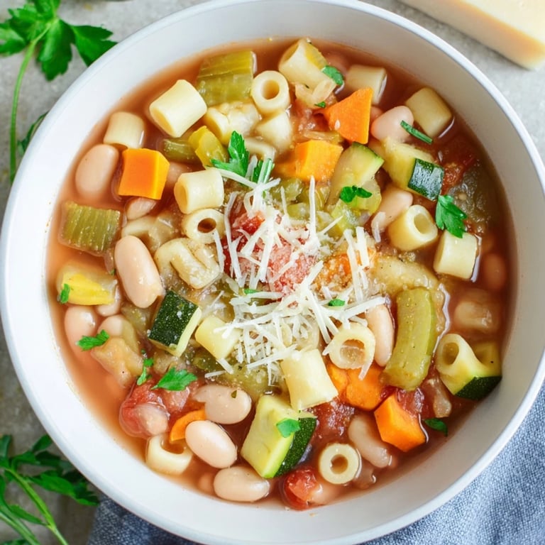 Pin It Minestrone vegetable soup is a hearty and comforting Italian classic, brimming with the goodness of seasonal vegetables, tender beans, and small pasta. This vibrant dish is seasoned with fragrant fresh herbs like parsley and basil, making it a nutritious and soul-warming meal that is perfect for any time of year.