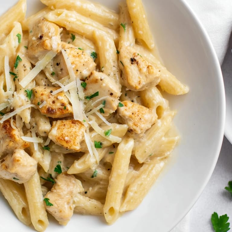 Pin It There's something about a weeknight when you're standing in the kitchen with barely thirty minutes before hunger wins that makes you reach for this chicken pasta. I discovered it one Thursday when I had chicken thawing, a box of penne, and absolutely zero energy for anything complicated. The smell of garlic hitting hot butter is what pulled my roommate out of the living room—and by the time the Parmesan melted into that cream, we both knew this was becoming regular rotation.