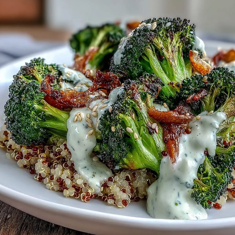 Pin It There's something about the smell of broccoli turning golden in a hot oven that makes a weekday afternoon feel like a small celebration. I discovered this bowl on a Tuesday when I had three things in my kitchen and absolutely no inspiration, but the roasted florets came out so crispy and caramelized that I started building around them instead of the other way around. The tahini sauce—silky, nutty, a little bright from lemon—turned what could have been a simple side dish into something I actually crave now.