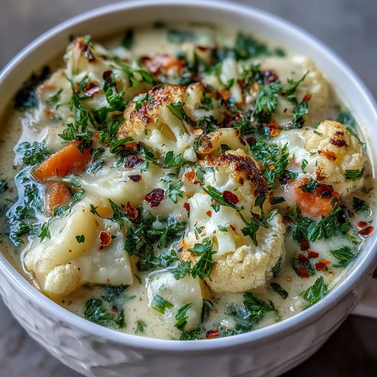Pin It My neighbor knocked on the door one November evening holding a thermos and asked if I had any crackers. Inside was this pale, silky chowder dotted with orange and green. She'd made too much and thought I might be hungry. I was, and that first spoonful taught me that cauliflower didn't have to be boring. It just needed the right company.
